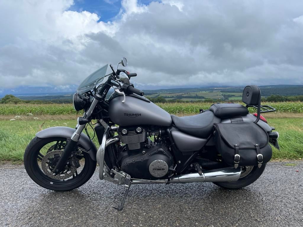 Zeer mooie thunderbird storm, heeft juist zijn 27000 km onderhoud gehad. Opties: korte half open dempers, hoog stuur, zijtassen, rugsteun, enz… bel me voor meer info.
