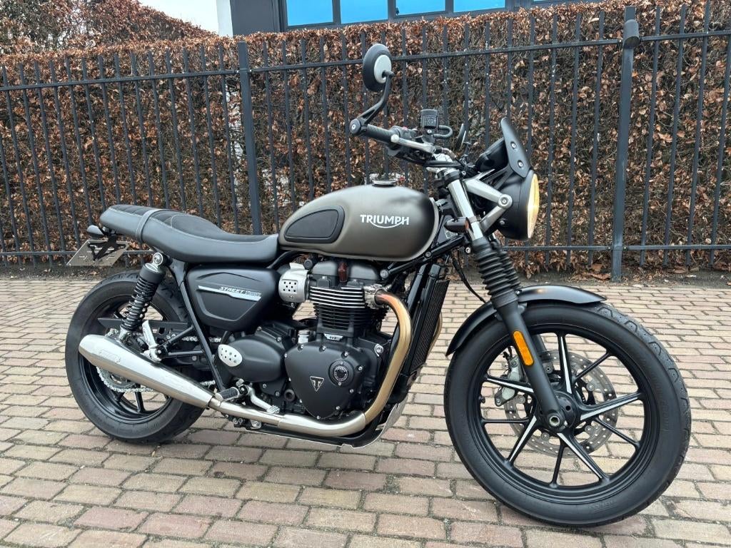 Triumph street twin 900 bj 2019 15000km vance hines uitlaten kleine pinkers korte plaathouder retro achterlicht schermke road rain modi handvatverwarming tc abs 48kw 7400€ voor belgische klanten