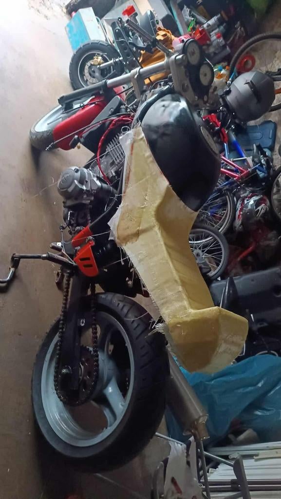 Mz skorpion sport 660, coursifié sans carte grise, non roulante, a finir, projet piste, le faisceau a été simplifier, la boucle arrière a été raccourci, montage mikuni 40(neuf) sur pipe de 600 grizzly